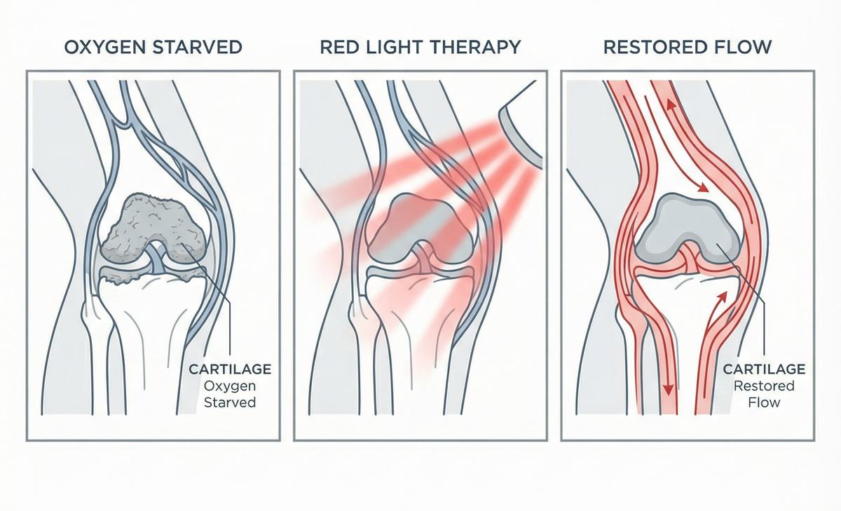 Knee cartilage has no blood vessels. When inflammation sets in, oxygen can't reach the joint. Pills mask pain. Shots wear off. The IgnioWave™ restores blood flow so your knee can finally heal.